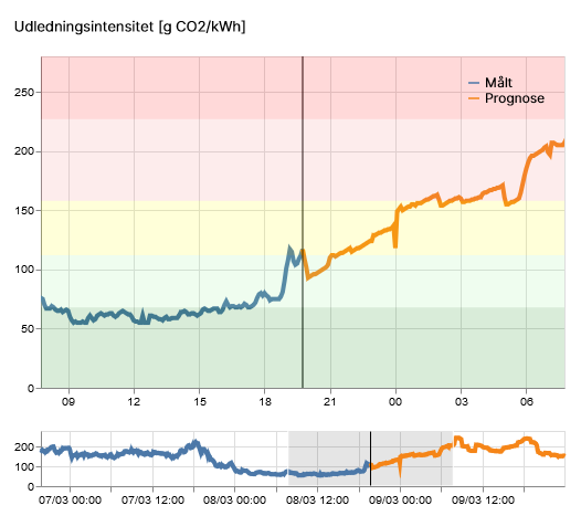 Time to announce another weekend project, and this time hopefully one that will be a bit more useful than most of them: By providing an overview of the emission costs of using electricity in Denmark, grønstrøm.nu allows people to immediately decide whether or not to postpone their electricity-heavy activities to a time where those activities would be greener.